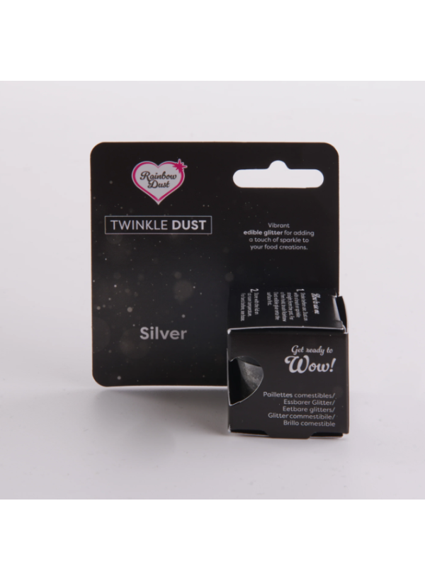 Twinkle Dust is a 100% edible sparkling glitter. Sprinkle directly onto ‘wet’ carriers such as buttercream and frosting, or apply to sugarpaste and Royal Icing by applying edible glue to the surface first.